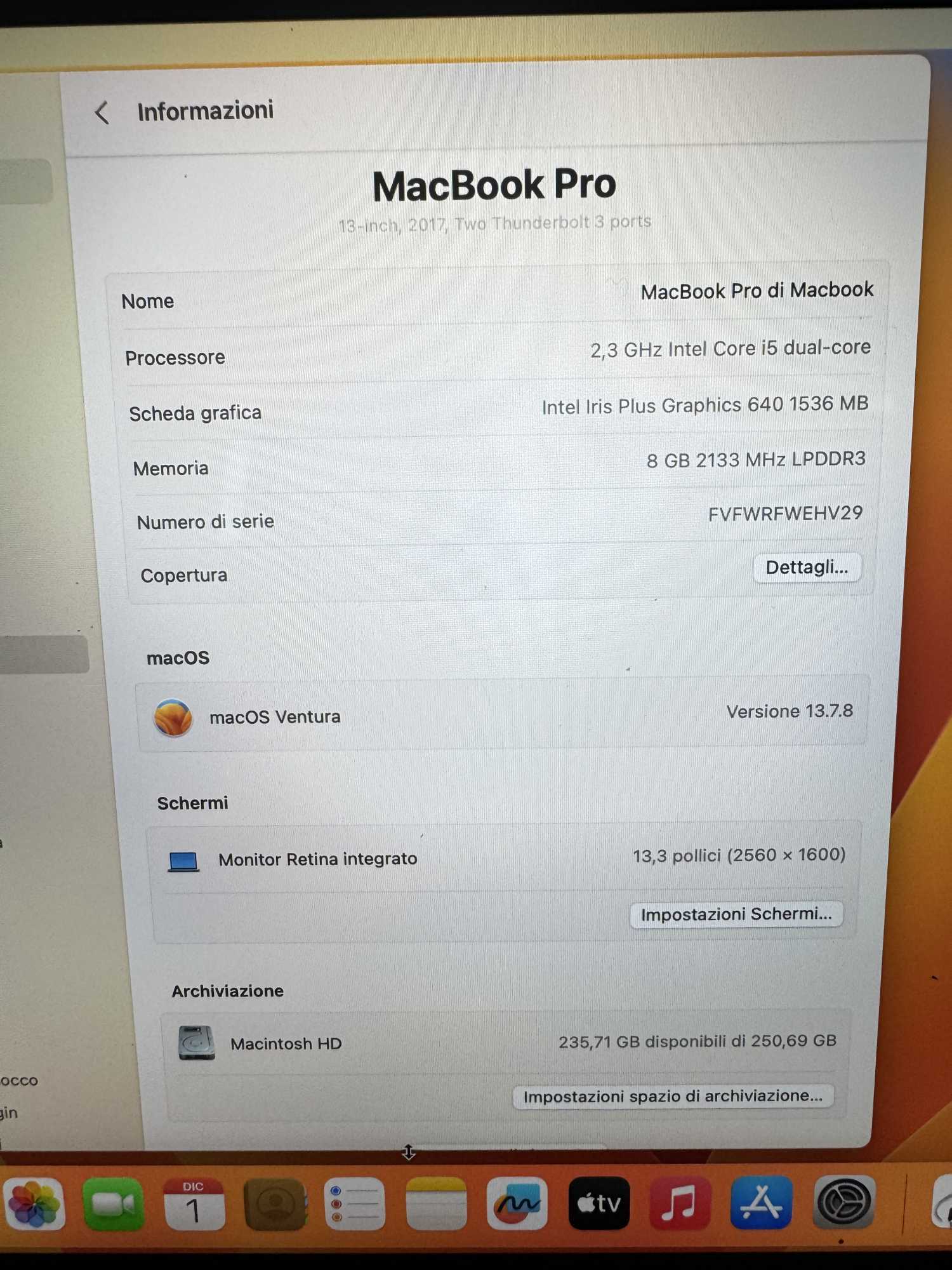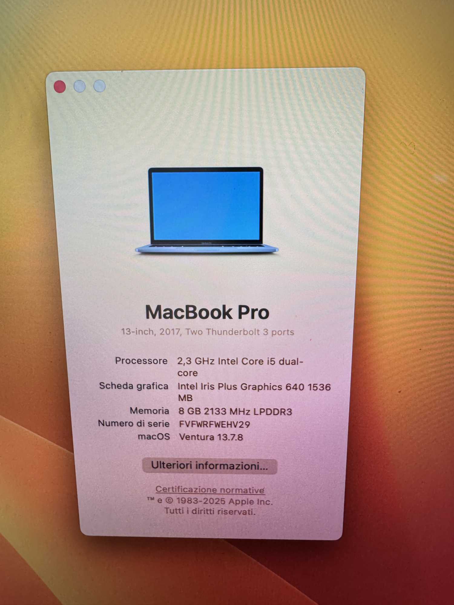 Apple MacBook Pro 13″ A1708 2017 i5 8GB RAM 256GB SSD Space Grey (FX_43) (Ricondizionato)