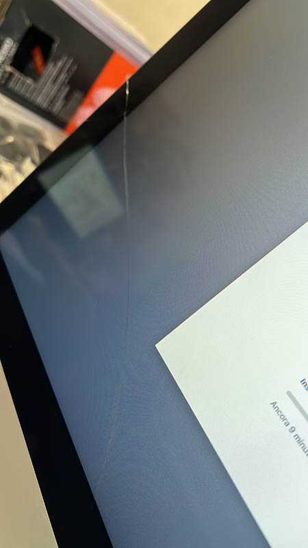 · Crepa vetro su angolo inferiore sinistro, non influisce sulla visualizzazione. Difetto estetico.